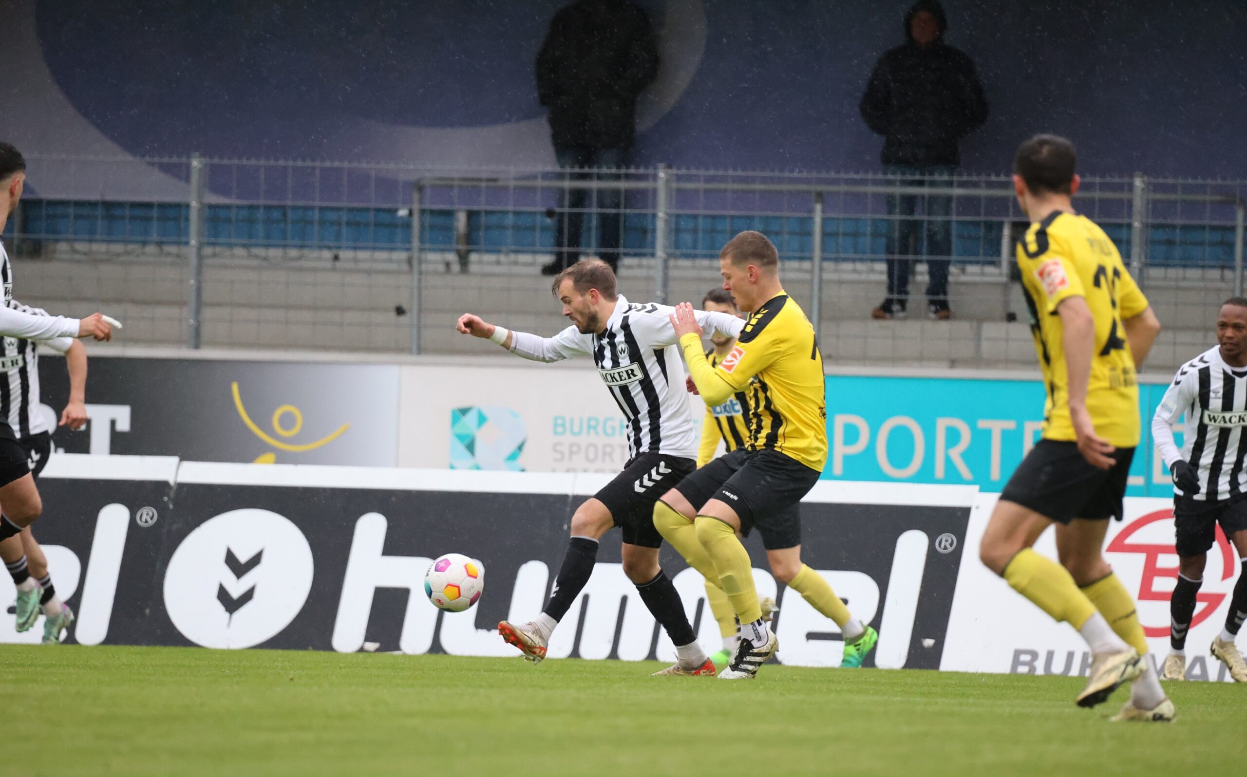 Auch wenn der Tabellenzweite und der Tabellenvierte im Hans-Walter-Wild-Stadion aufeinandertrafen, lag die Favoritenrolle aufgrund der aktuellen Form ganz klar bei der Heimmannschaft aus Bayreuth. Dennoch hatten sich die Salzachstädter einiges vorgenommen. Knapp 2.300 Zuschauer fanden sich am Freitagabend ein, um das Spiel zu verfolgen. Wie in einem Topspiel üblich, tasteten sich beide Mannschaften zu Beginn ab. Die erste nennenswerte Chance hatten die Hausherren durch Ex-Profi Jann Christopher George. Markus Schöller im Tor von Burghausen hatte jedoch kein Problem, den Distanzschuss zu entschärfen. Nach einem Eckball kamen die Gäste zur ersten Gelegenheit: Alexander Spitzer verpasste den Torerfolg knapp. In der 26. Minute kam Jannik Graf für die Hausherren zum Abschluss, vorausgegangen war ein Klärungsversuch des Wacker-Keepers außerhalb des Strafraums. Auf der anderen Seite hatte Felix Bachschmid nach einem Freistoß die Gelegenheit zur Führung, doch sein Abschluss wurde von der Verteidigung geklärt. Kurz vor der Pause, in der 44. Spielminute, flankte der Bayreuther Felix Heim den Ball in den Burghauser Strafraum. Jasper Maljojoki ging hoch zum Defensivkopfball, doch der Ball senkte sich unglücklich ins eigene Tor. Markus Schöller war überrascht und machtlos. Burghausen ging mit einem Treffer zum psychologisch ungünstigen Zeitpunkt in die Kabine.