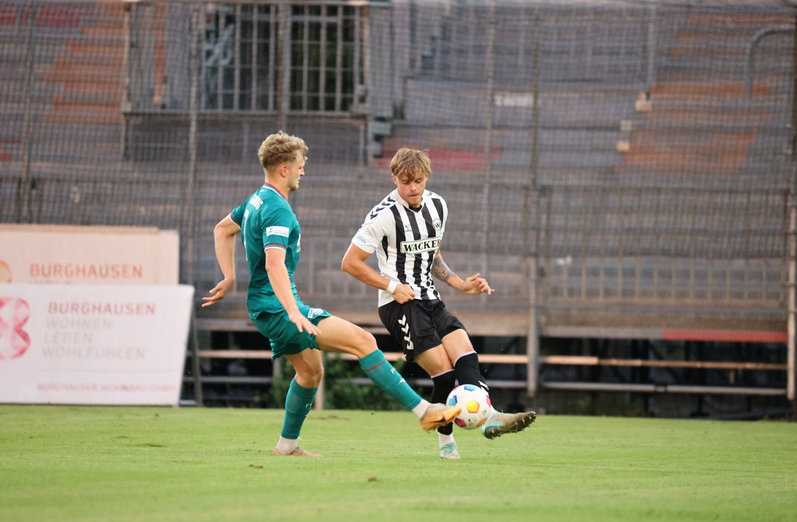 Nach einer turbulenten Woche geht es für den SV Wacker Burghausen am morgigen Freitagabend (29. November 2024 um 19 Uhr) zum letzten Spiel vor der Winterpause nach Augsburg. Im Rosenaustadion gastieren die Salzachstädter bei der U23-Mannschaft des FCA. Auf der Trainerbank des SV Wacker Burghausen übernehmen für das Auswärtsmatch NLZ-Leiter und A-Lizenz-Inhaber Michael Kostner als Trainer sowie SVW-Vereinslegende Ronald Schmidt auf der Co-Trainer-Position die Verantwortung, nachdem Robert Berg und sein Assistent Muhamed Mehmedovic den SV Wacker Burghausen nach neun sieglosen Spielen in Folge am vergangenen Montag (25. November 2024) verlassen mussten. Ausschlaggebend dafür war sicherlich nicht nur die 1:3-Heimniederlage am vergangenen Samstagnachmittag vor knapp 3.500 Zuschauern gegen die DJK Vilzing: Felix Weber traf in der 41. Minute per Elfmeter zum 0:1 für die Gäste. In der 83. Minute legte Weber erneut mit einem Strafstoß zum 0:2 nach. Hoffnung keimte auf, als Daniel Bares in der 90. Minute den 1:2-Anschlusstreffer für Burghausen erzielte. Im direkten Gegenzug machte Vincent Ketzer mit dem 1:3 für Vilzing aber jegliche Hoffnung auf zumindest einen Punkt zunichte. Burghausen rutschte durch die Niederlage auf den neunten Tabellenplatz ab. Nach 21 Spielen hat die Mannschaft um Kapitän Christoph Schulz nun 27 Punkte bei einem Torverhältnis von 30:30 auf dem Konto. Der Abstand zum ersten Abstiegsrelegationsplatz, der derzeit von der SpVgg Hankofen-Hailing belegt wird, beträgt sieben Zähler. Im anstehenden Match gegen den FC Augsburg II ist nun vor allem auch die Mannschaft gefordert, wenn man einigermaßen versöhnlich in die Winterpause gehen möchte. Hoffnung macht das Ergebnis aus dem Hinspiel: Burghausen besiegte den FC Augsburg II im August vor heimischer Kulisse in der Wacker-Arena mit 2:1. Nach einem frühen Rückstand durch den ehemaligen SVW-Spieler Lukas Aigner glich Sebastian Malinowski zunächst aus, bevor Felix Bachschmid zehn Minuten vor dem Ende den 2:1-Siegtreffer erzielte. Auch die Statistik macht Hoffnung: Bereits 20 Begegnungen gab es zwischen beiden Teams: Elfmal war Burghausen siegreich, vier Erfolge stehen beim FCA zu Buche und fünf Spiele endeten unentschieden.