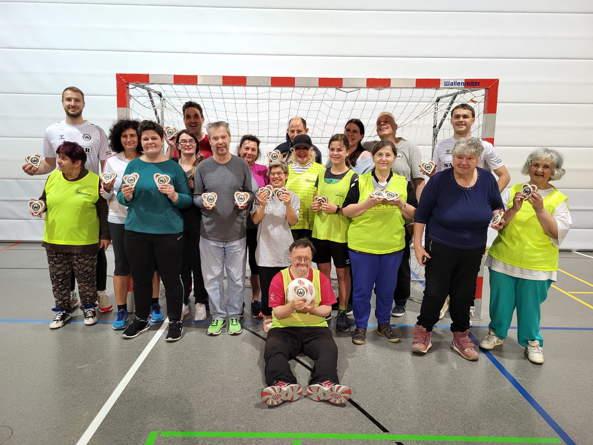 Am vergangenen Dienstagabend (26. November 2024) waren die Burghauser Regionalliga-Fußballer erneut zu Besuch bei der Sportgruppe für „Menschen mit Handicap“ der Abteilung VitaSport des SV Wacker Burghausen e.V. Die SVW-Spieler Tobias Duxner und Vojtech Mares absolvierten unter der Anleitung von Karl Heinz Fenk (Sportlicher Leiter der Wacker Burghausen Fußball GmbH) eine gemeinsame Trainingseinheit mit der Sportgruppe und verteilten als Belohnung für den Einsatz – passend zur Vorweihnachtszeit – gebrandete SVW-Lebkuchenherzen an die Teilnehmer. Bereits seit über 40 Jahren besteht die Sportgruppe für „Menschen mit Handicap“, in welcher die Mitglieder unter der Leitung von Übungsleiterin Sonja Lamm in Zusammenarbeit mit den verschiedenen Abteilungen und Sondereinrichtungen nicht nur mit den Regionalliga-Fußballern, sondern in Absprache mit den Abteilungen auch in den weiteren Sportarten des Vereins trainieren.